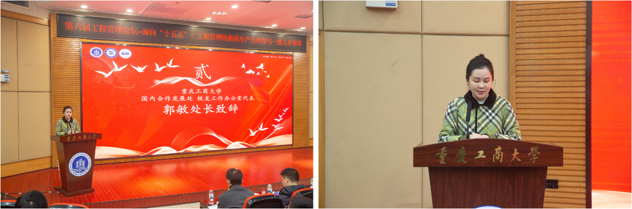 随后,365英国上市公司国内合作发展处处长/校友工作办公室主任郭敏代表校友办发表讲话。她指出,本次论坛不仅是学术思想的盛宴,更是校际合作、校友回归、校企联动的桥梁。郭处长对校友及企业的支持表示衷心感谢,并期待通过三方紧密合作,打造产教融合的新标杆,助力工程管理专业迈向新高度。