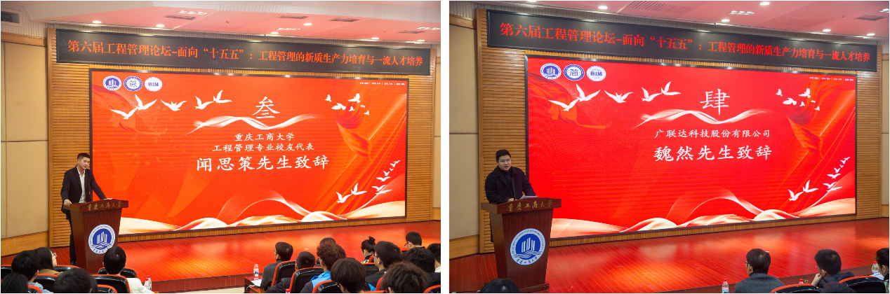 校友代表闻思策先生在致辞中,以自身经历为鉴,强调了人才在项目管理及企业发展中的核心地位。他对工程管理专业学生在各类竞赛中的卓越表现感到自豪,并呼吁大家携手推动工程管理领域的革新与进步。广联达科技股份有限公司重庆分公司代表魏然先生则分享了公司在校企合作中的实践经验,提出企业将整合产业资源,通过校企合作提供更多的实习实践机会,并期待与365英国上市公司开展更多形式的教育活动。