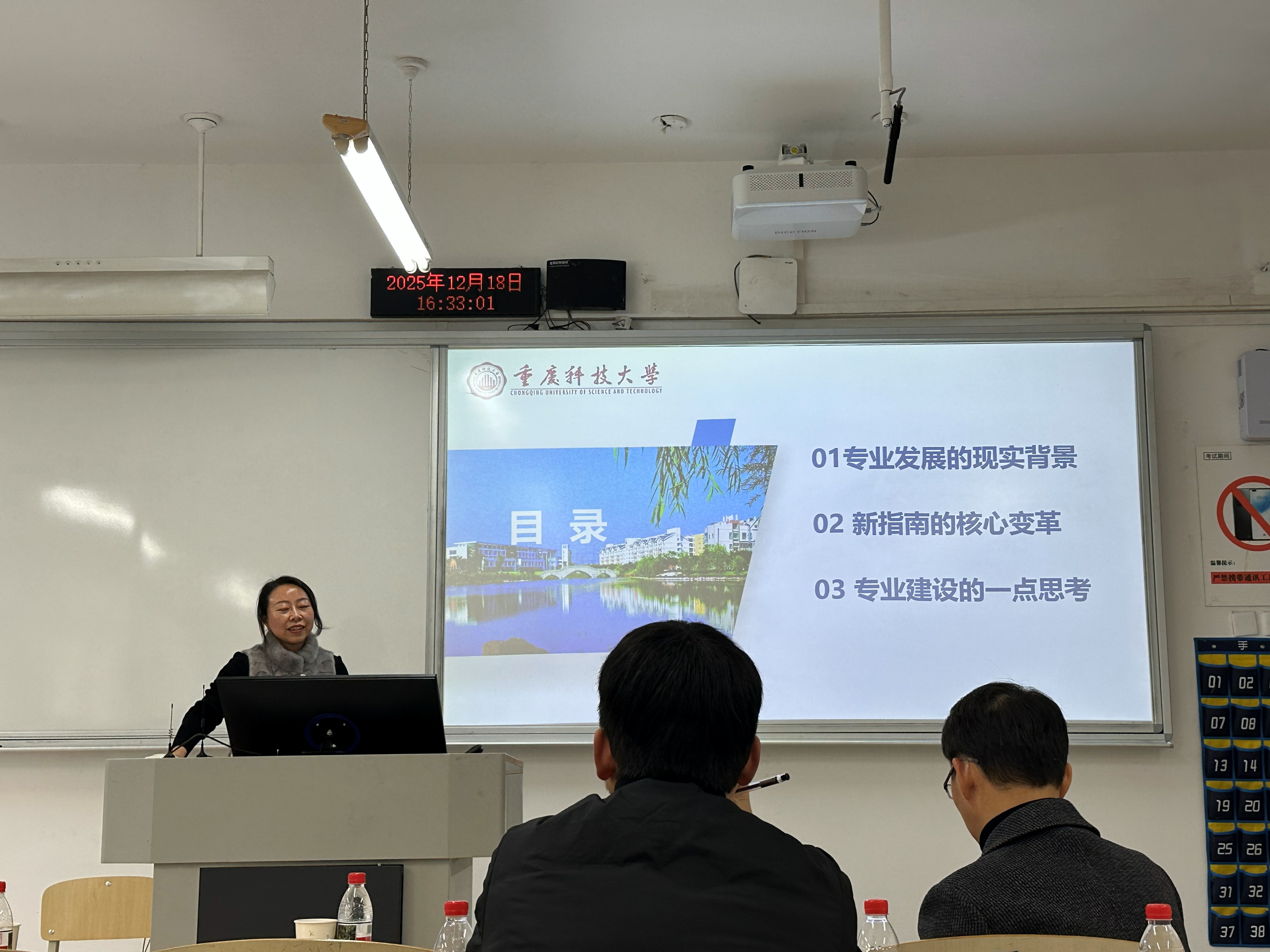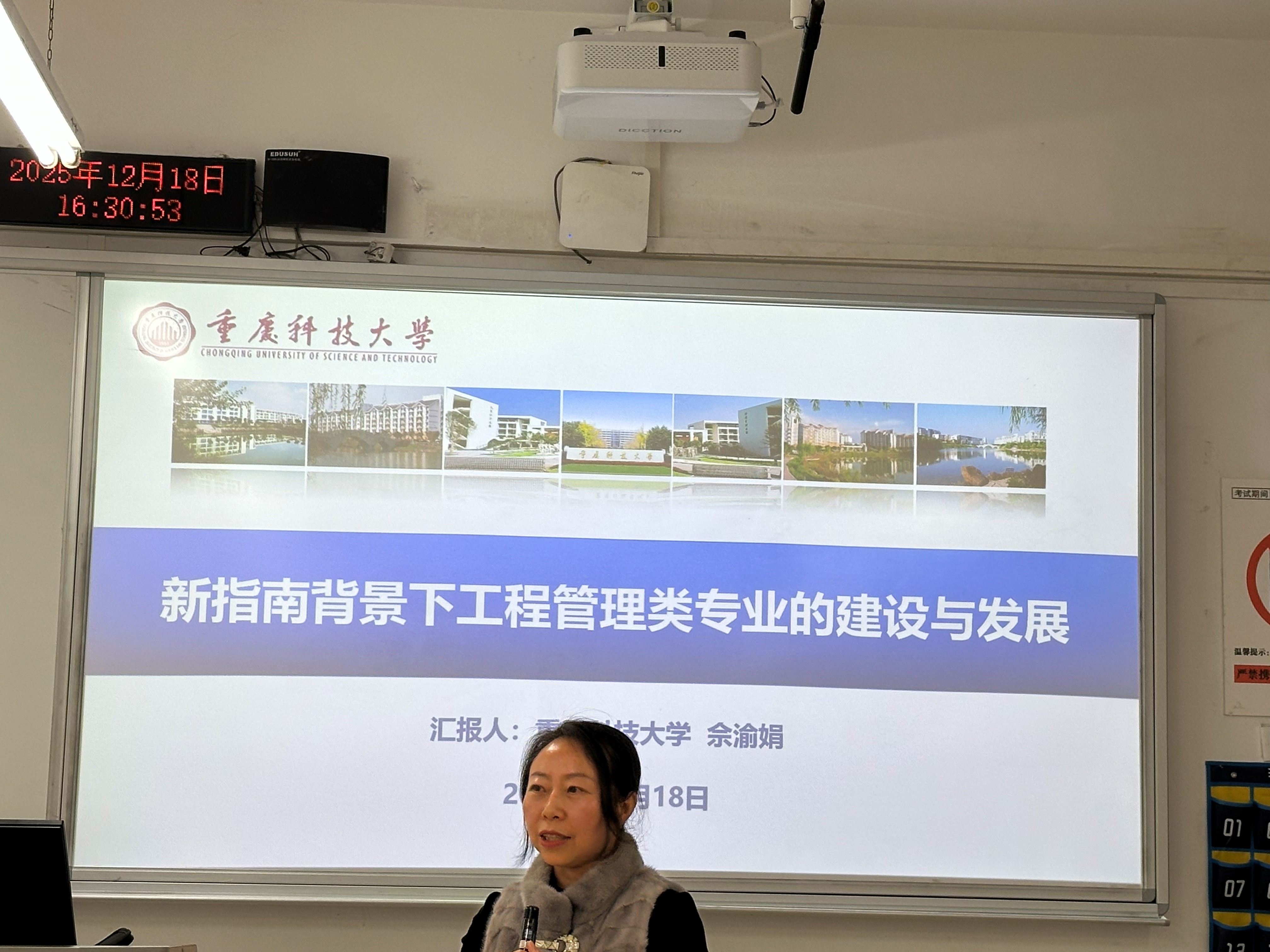 为精准对接国家战略与行业发展需求,系统推进工程管理类专业转型升级,365英国上市公司于2025年12月18日下午举办专家报告,特邀重庆科技大学管理学院佘渝娟教授作“新指南背景下工程管理类专业的建设与发展”主题报告。工程管理专业全体教师齐聚07212教室,共同学习研讨,共探工程管理类专业人才培养新路径——聚焦行业现实挑战与智能化转型,为人才培养方案修订奠定基础。本次专家报告由梁桂保副院长主持。